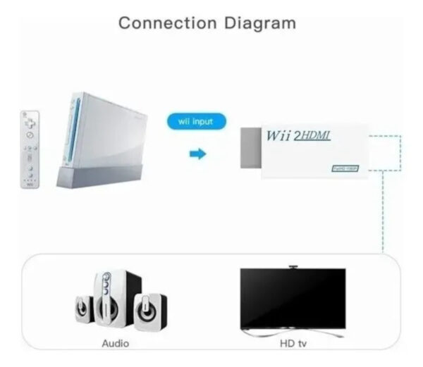 Agora você finalmente poderá conectar seu Nintendo Wii a televisores com saída de alta definição HDMI para melhoria na qualidade de som e imagem. Este conversor HDMI faz um upscaling da imagem através de um microprocessador gráfico, convertendo o sinal 480p que é o formato de melhor definição disponível no console para até 1080p permitindo aos usuários de TVs HDTV ou Full HD exibir imagens mais cristalinas do Wii. A resolução nativa do console normalmente aparece um pouco borrada nos televisores de alta definição, não compatível com 4k, para TVs HDTV ou Full HD.