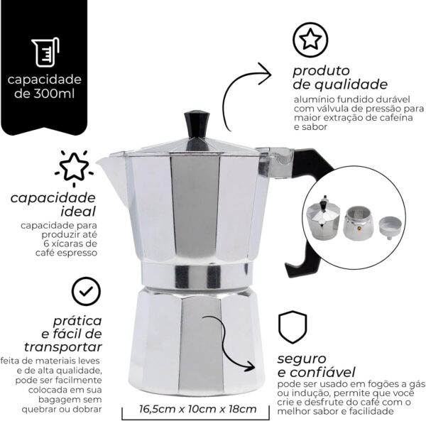 Cafeteira De Alumínio Italiana 300ml Serve 6 Xícaras