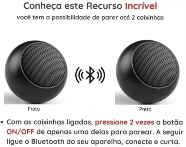 O maior diferencial desta caixa de som é que você pode utilizar 2 caixas de som M3 simultâneas no seu aparelho Basta ligar as duas caixinhas ao mesmo tempo em seguida clicar 3 vezes consecutivas em uma delas e aguardar ela emitir um som e pronto já estão conectadas ATENÇAO LIGAR O BLUETOOTH SOMENTE APOS REALIZAR ESSE PROCEDIMENTO DE EMPARELHAR AS DUAS