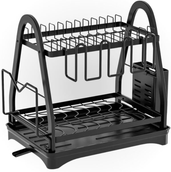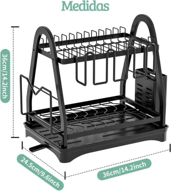 Escorredor De Louça 2 Andares Inox Preto C/ Drenagem 360°