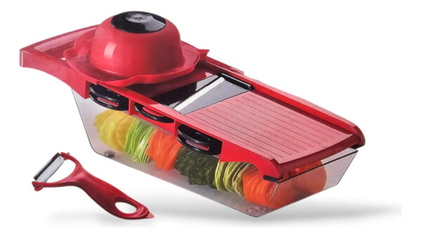 Você poderá preparar as receitas de sua preferência rapidamente e com menos esforço. Corta, rala e pica alimentos variados: cebolas, pepinos, tomates, batatas, frutas em geral, cogumelos, queijos, etc. Basta inserir os produtos no topo da caixa sobre as lâminas e apertar as caixas sucessivamente até criar a sua salada ou cortar legumes/frutas que precisar. Faça uma salada com uma excelente apresentação em segundos. Além disso, incluso descascador de alimentos.