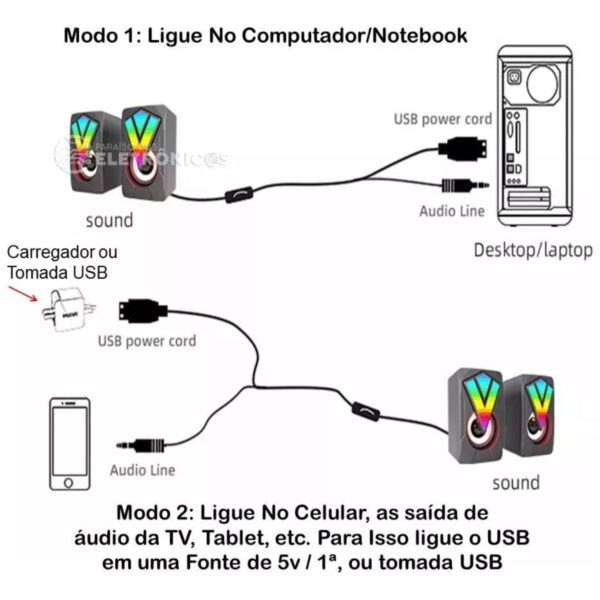 Gamer Caixinha Usb Com Luzes Caixa De Som Pc