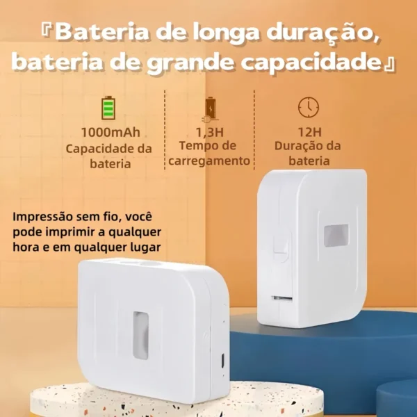 Impressora Térmica Bluetooth Mini Etiquetas Adesiva Portátil Branco