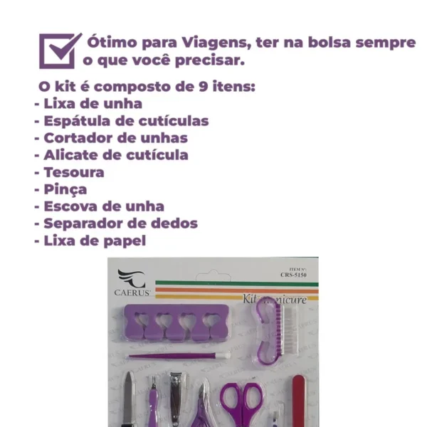 Kit Manicure e Pedicure Com 9 Peças Caerus