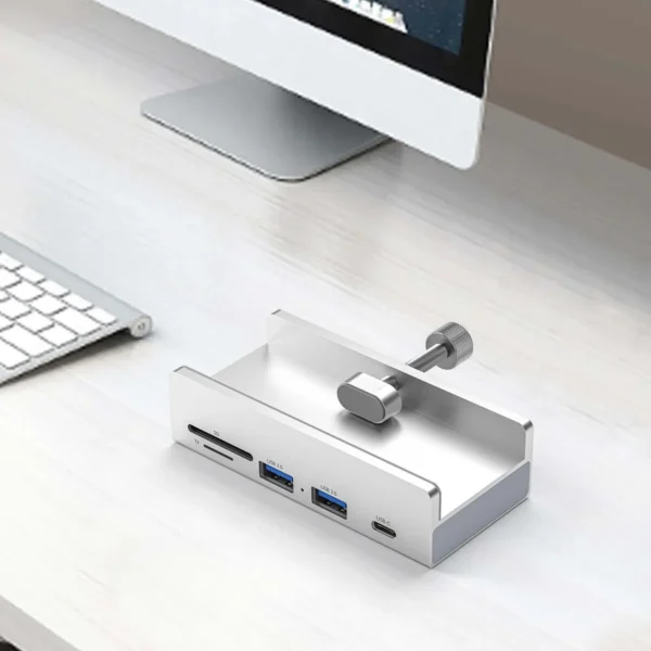 Pode prender a borda do monitor ou mesa, e a almofada antiderrapante de silicone pode evitar arranhões e proteger o equipamento.