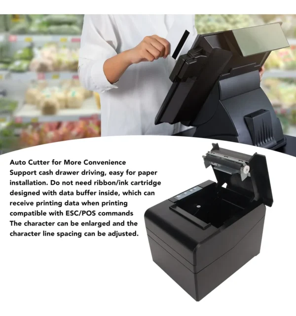 Velocidade de impressão rápida: esta impressora térmica de 80 mm suporta velocidades de impressão mais rápidas de 220 a 300 mm/s. Fácil instalação e manutenção de papel. Comando ESC/POS: Esta impressora térmica de recibos é compatível com comandos ESC/POS e vários modos são fornecidos (interruptor DIP de ajuste). Buffer de dados: Esta impressora térmica de recibos é compatível com comandos ESC/POS e vários modos são fornecidos (interruptor DIP de ajuste). Buffer de dados: esta impressora térmica de recibos é compatível com comandos ESC/POS e vários modos são fornecidos (interruptor DIP de ajuste). Buffer de dados: esta impressora térmica de etiquetas é compatível com comandos ESC/POS e vários modos projetado com buffer de dados interno, que pode receber dados de impressão durante a impressão.