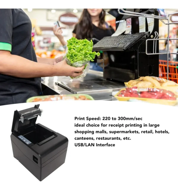 Impressora térmica de 80 mm Interface LAN USB de 220 a 300 mm/s Impressora térmica de recibos com comando ESC POS para varejo 100-240 V