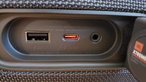 O alto-falante tem uma porta de saída de carga, dispositivos externos podem carregar a partir da porta USB A ou USB C. Do meu teste, a carga é limitada a 5V/1A
